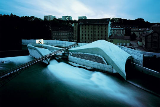 Amorfna forma djeluje snažno, elegantno, dinamično. Čini se kao da je ova hidrocentrala oblikovana od fluidne mase koja je nabubrila te se potom ukrutila. Njen oblik ocrtava i dramatizira upravljanu dinamiku vode. Isprva voda mirno teče u sabiralište, ispred turbina se podiže, otuda se ruši, a nakon generiranja električne energije vraća se ponovno u tok rijeke Iller.