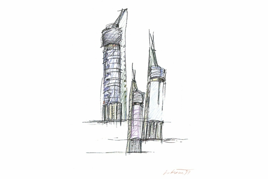 Podrecca: Pokušao sam raditi na računalu, ali moj je problem da računalo doživljavam kao happy end, nedostaje mu tragika i skepsa koju posjeduje olovka. Jer kada koji od mojih suradnika na računalu napravi prvi input, on izgleda tako dobro, savršeno i razrađeno, ne sugerira mi bitna poboljšanja niti procesualni odnos prema projektu. S olovkom je drukčije. Kad počnem crtati, uvijek poželim promijeniti koju crtu, nešto dodati. Grafit otplavi i vraća mi ideje, koje odmah rušim i penjem se dalje. Tu se radi o odnosu racionalnog i iracionalnog. Moram znati sve mogućnosti računala i što od njega mogu dobiti, samo ne mogu od početka raditi na njemu, već tek kad imam jasno razrađenu ideju. Recimo kako Gehry radi s računalom. Jedan model treba presvući u kamen i tu ima 150 000 hiperboličnih paraboloida, to se ne može crtati . On se mora poslužiti računalima tvornice aviona Mirage u Toulousu, gdje se postavlja hiperkompleksni arhitektonski program i kao zubar brusilicom ideš po modelu koji se zatim prenosi u sistem kojemu su zadani odredeni parametri i gdje se automatski postavlja raster kamena u hiperboličnim paraboloidima. To je jedna čisto tehnička mogućnost. Sad baš pišem o prostoru pa i o Gregu Lynnu koji ima puno zanimljiviji postupak rada s računalom. U računalo se ubacuju okvirni parametri: o svjetlu, o tipologiji i sl. Zatim pritisnete tipku i ta struktura, tipologija, konstrukcija i tekstura počnu se razvijati kao melodija, a arhitektova se umjetnost sastoji u tome da u jednom trenutku odluči kada je proces završen. Tu vidim veću perspektivu. Ako se taj input tako sažeto i višeslojno napravi, dinamika spajanja tog organizma možda je analogna onome kako bih ja radio s računalom. Putem toga bi se došlo do novog prostora.