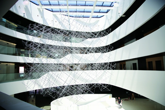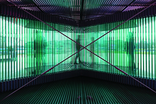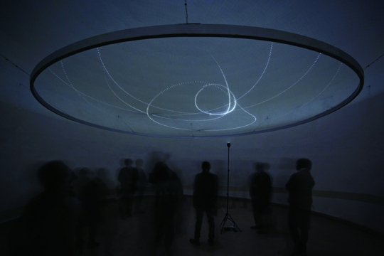 ORIS: Jedno od temeljnih pitanja Vašega opusa vezano je uz mjesto odvijanja radova – što je ono i gdje se nalazi? U radu Seeing with Eyes Closed to pitanje nameće se vrlo eksplicitno, s obzirom na to da posjetitelji imaju zatvorene oči dok su okruženi tehnologijom koja na njih izravno djeluje. Gdje je to mjesto na kojem rad egzistira?