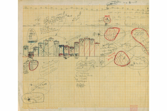 Iannis Xenakis (1922. – 2001.) zauzima jedinstvenu poziciju u novijoj povijesti umjetnosti dvadesetog stoljeća s obzirom na činjenicu da se, prije nego što je postao jedan od najvažnijih skladatelja svoje generacije, školovao za inženjera te je sa zakašnjenjem priznat kao arhitekt pionir. Njegovo formalno obrazovanje i empirijska praksa u Le Corbusierovu ateljeu, u trajanju od dvanaest godina (1947. – 1959.), oboje povezani s njegovim prirodnim talentom, učinili su Xenakisa izuzetnim crtačem, do te mjere da je zadržao određenu prednost nad svojim kolegama skladateljima. Grafika je neophodna; postoje stvari kojima se može lakše manipulirati crtežom. Stekao sam ovo iskustvo tijekom dvanaest godina u kojima sam se bavio arhitekturom s Le Corbusierom1. Tradicionalno, skladatelji su školovani da glazbu razmatraju s mikro do makro perspektive vjerni njihovu etimološkom korijenu, componere – stavljati zajedno, u konačnici na štetu neposrednog shvaćanja cjelokupne forme.