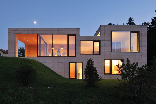 Vratimo se za početak u 2006. godinu, kad je tim Arhitekture Krušec pobijedio na natječaju za upravnu zgradu Biotehničkog fakulteta u Ljubljani, koja je četiri godine poslije i izvedena. Suzdržana pojavnost te zgrade koja sadrži prostore velike predavaonice, dekanata i centralne knjižnice podcrtana je kontroliranim odabirom materijala: bijeli beton za konstrukciju, terrazzo za pod, drvo za pregrade – dosta! Staložen spoj ovih triju materijala i neposredno osjetilno iskustvo čestog boravljenja u zgradi toliko su se dojmili jednog korisnika da je od istih arhitekata naručio projekt kuće za svoju obitelj. Tražio je samo da kuća bude upravo od betona, terrazza i drva. Drugih zahtjeva nije imao ni kasnije, iako je u čitavom procesu nastajanja obiteljske kuće aktivno sudjelovao. Od narudžbe je prošlo pet godina; kuća je danas izgrađena i nastanjena. Autorski tim Arhitekture Krušec za to je ostvarenje primio ovogodišnju nagradu slovenske komore arhitekata Zlati svinčnik (hrv. Zlatnu olovku). Pored strukovnih priznanja i osobnog autorskog zadovoljstva, dugotrajni proces stvaranja kuće arhitektima je naposlijetku donio i jedno dublje zadovoljstvo, iznimno rijetko u ovom poslu – klijenta oplemenjenog kućom, klijenta koji im je postao prijatelj.