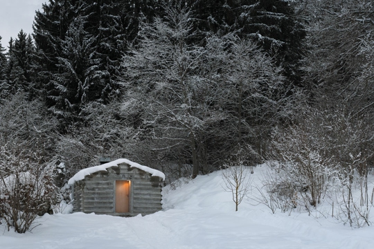 Refugij Lieptgas stoji tamo gdje je u prošlosti stajala drvena građevina koja je služila kao sklonište poljoprivrednicima. Ispred kolibe, uzak put vodi u šumu kod Flimsa. Na suprotnoj strani je konjušnica – zajedno tvore neku vrstu vrata koja vode u šumu. Obje zgrade, koliba i konjušnica, bile su napuštene i propadale su. Ova cjelina stvara vrlo impresivnu sliku ovog mjesta, a kada je legislativa zahtijevala da se očuva karakter prijašnje kolibe, ta impresija bila je nešto što je trebalo sačuvati. Bilo je moguće preobraziti ranije naseljeni dio cjeline i zamijeniti ga novom gradnjom. Drvo ili, preciznije, obrađeno drvo kakvo koristimo danas, bez izravnosti tradicionalne proizvodnje drveta i odnosa prema šumi, nije se više činilo kao pravi izbor građevnog materijala u ovom sjenovitom, prilično vlažnom mjestu