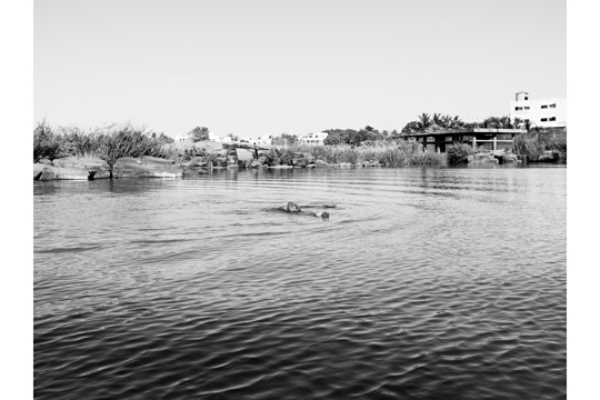 Sjever-jug-istok-zapad, gusto ispisano, bez ijednog praznog mjesta, naziv je fotografskog aparata izraelskog umjetnika Aïma Deüellea Lüskog. Kao i svi njegovi aparati, koje izrađuje od 1970-ih, i ovaj preispituje ključne odrednice tradicionalne fotografije, u potpunosti se prilagođavajući situaciji koju bilježi, u ovom slučaju crti razgraničenja istočnog i zapadnog Jeruzalema uspostavljenoj 1948. i izbrisanoj 1967. godine. Sjever-jugistok- zapad ukazuje na apsurdnost pokušaja nasilnog dijeljenja te kasnijeg brisanja te iste podjele unutar jedinstvenog živućeg tkiva grada koji izmiče jednostavnom prikazu te donosi kompleksnu sliku vremena i prostora bilježeći istovremeno četiri slike iz četiri smjera od kojih svaka briše onu sljedeću, ali i ostavlja tragove.