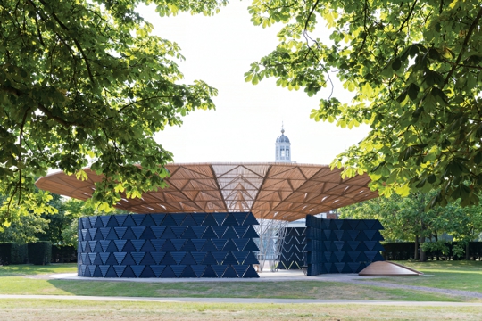 Postoji nešto svečano ne samo u posjetiteljima ove privremene konstrukcije nego i u samome paviljonu: kao da bi se s posebnom pažnjom i poštovanjem jedni drugima klanjali. Uspjeh perforiranih zidova građenih od modularnih drvenih blokova vidljiv je u središnjem prostoru okupljanja koji je istovremeno zaštićen od okolice i velikodušno otvoren pogledu. Procjepe drvenih blokova, kao i prostor između krivulja zidova i krova, penetriraju okolno zelenilo i lagani vjetar, plavetnilo neba i pogled promatrača u prolazu. Zakoračivanje preko praga pažljivo ocrtanog i ograđenog vrta Serpentine nalik je maloj svečanosti.