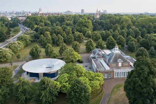 Utopijanizam također mora biti prevladavajući razlog za godišnji projekt paviljona Serpentine, prikladno postavljen u Hyde Parku iz doba prosvjetiteljstva i unutar njega na ograđenom travnjaku Galerije Serpentine. Englezi u svojim parkovima više ne grade umjetne ruševine i paladijanske hramove, ali ni nove vrste paviljona nisu ništa manje egzotične. Kriterij rajske arhitekture je njezin kontrast svakodnevnom, što je dokazano uvjetom za svakog autora paviljona Serpentine: svjetski poznati arhitekt ili dizajner koji nikada prije nije realizirao zgradu u Engleskoj. Paviljon Serpentine je stoga svake godine također i vrlo poseban debi. Popis prethodnih autora može se čitati kao tko je tko na međunarodnoj arhitektonskoj sceni. Zaha Hadid, Oscar Niemayer, Rem Koolhaas, Peter Zumthor, Alvar Siza, Jean Nouvel i mnogi drugi prethodili su ovogodišnjem autoru i prvom afričkom sudioniku, arhitektu s uredom u Berlinu, Diébédu Francisu Kéréu.