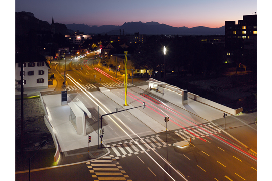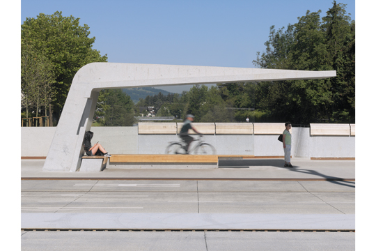 Lokalna cestovna uprava zamislila je most kao betonsku konstrukciju; naša je ideja bila da koristimo prednosti betona u smislu kompozicije, podatnosti i tretmana površine. Kalup mosta slijedi ideju tijesta, razvučenog u kolnik, biciklističku i pješačku zonu, podignutog na rubovima kako bi se oblikovao parapet te rastegnutog kako bi se stvorili krovovi autobusnih postaja. Sve funkcionira kao jedna cjelina.
