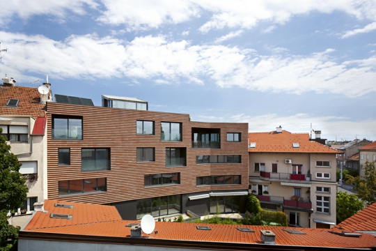 Raznoliki stambeni prostor, koji uključuje i jedan dupleks smješten na zadnjim dvjema etažama, nalazi se ispod liječničke ordinacije, a neposredno uz prometnicu s poluetažnim odmakom nalaze se garažni i poslovni sadržaji.