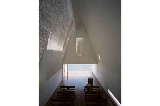 Atmosfera na gornjem katu izrazito je uzvišena i religiozna. Prostorno iskustvo počinje na putu dugom 30 metara koji vodi do kapele. Kada joj se polako pristupa, pojavljuje se kao znak spuštenog prostora s druge strane kroz otvor širine 600 mm između dva kraka stubišta. S naznakom oceana u daljini, posjetitelji se penju uza stube, prolaze kroz vrata i okreću se od pregradnog zida kako bi ušli u prostor koji nudi neometan pogled na ocean. Odnos između prostora i oceana intenzivniji je zbog povišenog položaja. Pogled je izoliran od plaže i ljudi tako da se vidi samo široki ocean.