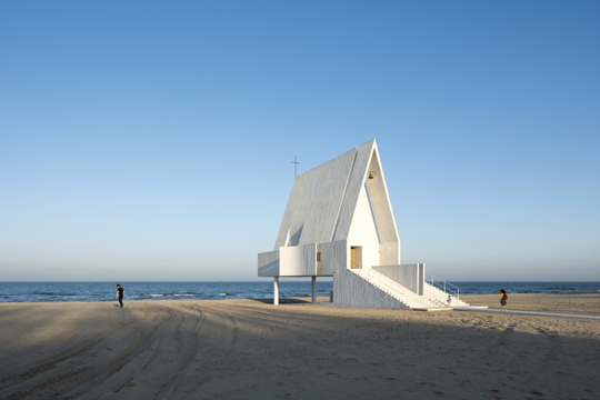 Kapelu na obali mora zamislili smo kao stari brod koji su davno nosile morske struje. Ocean se s vremenom povukao i otkrio praznu konstrukciju koja je ostala ležati na plaži. Prostor je stoga podijeljen vertikalno. Natkriveni vanjski prostor posve prirodno postaje mjestom odmora za ljude na plaži, kao i točka koja povezuje religiozni prostor sa svakodnevnim životom. Kada nastupi plima, prostor će biti potopljen vodom. U tom se trenutku pojavljuje slika plutajućeg broda.