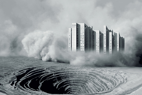 Otvoreni pojam umjetnosti, novi umjetnički mediji i pojmovnik koji uključuje inženjerijske termine poput „instalacije“, izlaženje umjetnosti u javni prostor (jednačenjem javnog i političkog prostora umjetničke instalacije u javnom prostoru mogu biti sagledane kao podsjetnik na činjenicu da je društveni prostor stvoren i strukturiran u raznim konfliktnim procesima) često se povezuje sa odnosno cilja na konceptualizaciju arhitekture te rekreaciju arhitektonskog prostora i mase, koja se često opravdava korištenjem Wittgensteinove metafore „obiteljske sličnosti“ (Familienähnlichkeiten). Primjerice, Peter Eisenman je svoje kuće (House II – VI) projektirao konceptualizacijom arhitekture prema sintatičkim pravilima, podijelivši kubus zgrade na pravilnu mrežu koja može biti definirana u prostoru stupovima ili paralelnim zidovima, što je u Kući VI realiziranoj 1975. rezultiralo nuždom postavljanja staklenog žlijeba posred spavaće sobe, tako da su kreveti za jednu osobu postavljeni s obje strane žlijeba, odnosno bračna postelja je raspolovljena. Takvu sekvencionalnu linearnost u projektu naziva arhitektonikom. Prema njegovoj strategiji post-funkcionalizma, ishodište klasične i moderne arhitekture jest subjekt, dok on predlaže post-humanističko nestajanje subjekta, tzv. vanishing subject.