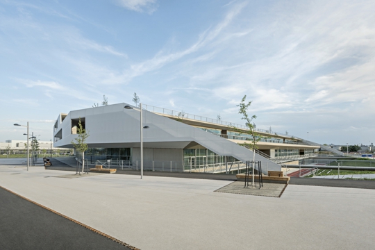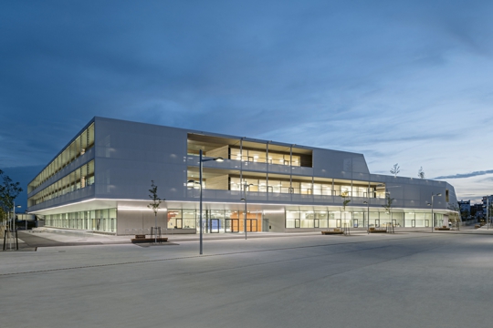 Takav cjeloviti mikrokozmos željeli su i, mora se reći, uspjeli ostvariti Hemma Fasch i Jakob Fuchs objektom gimnazije u novoj bečkoj gradskoj četvrti Seestadt Aspern. Ako prihvatimo tezu da je uz nastavnike i razredne kolege prostor treći učitelj, onda arhitekturi školskih ustanova pripada odlučni značaj u djelovanju na razvoj društva. Jedan od razloga uspjeha škole Aspern leži već u zahtjevima natječaja za ostvarenjem prostora za rad i učenje koji omogućuju individualni tretman, rad u grupama raznih veličina, samoorganizirano i otvoreno učenje te projektnu nastavu. Tim su zahtjevima arhitekti odgovorili čitavim nizom svojih vještina koje se odnose na reakciju na položaj unutar novog gradskog naselja, konstrukciju, fasadne ovojnice, režiju svjetla, primjenu boje, a prije svega na kompleksni prostorni sklop unutar blago nagnutog terasiranog ozelenjenog krajolika.