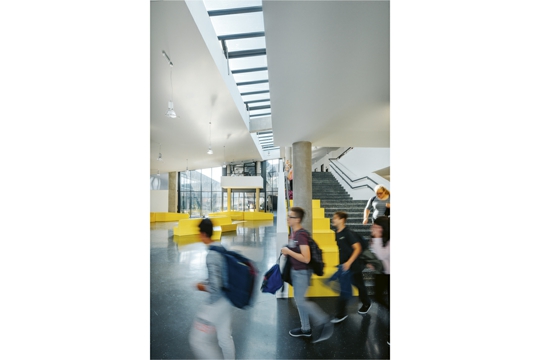 Rijetke su prilike interveniranja u posve netaknuto okruženje, u kontekst bez snažnog žarišta, kao što je to primjer škole u Popovači smještene na prazno polje u rubnoj zoni maloga grada. U vrijeme raspisa javnog arhitektonskog natječaja 2007. godine, Popovača je imala najvišu stopu nataliteta u Hrvatskoj; najmlađi grad u kojem su dio djece autobusima razvozili u obližnje škole. Osim osnovne škole za petsto učenika, školi je priključena dvorana koja nadmašuje potrebe škole i u ulogu investitora, osim županije, uvodi grad koji u njoj vidi mogućnost smještaja aktivnosti za brojne popovačke udruge.