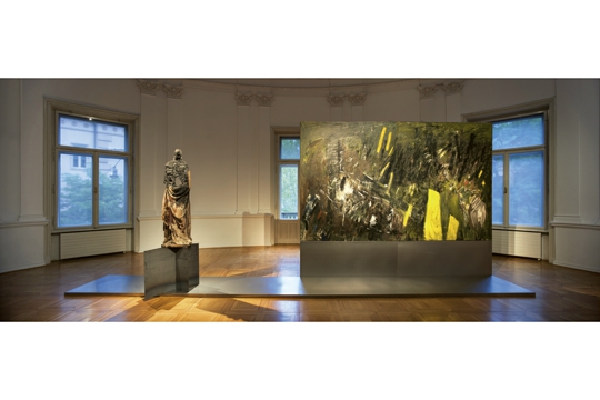 Teško se oteti dojmu mistične aure i iščekivanja koja obavija izložbu Ive Šebalja Slikarski memento. U nadi da će se slikareva imputirana samozatajnost rasplesti u dvoranama Moderne galerije, stupamo u centralnu galerijsku dvoranu i zastajemo. Jukstaponiranje gotovo richierovskog kipa Presveto Srce Isusovo, vatrom uništene skulpture iz ratom pogođene crkve sv. Ante u Kninu (18. – 19. st.), ujedno i povoda ovom ciklusu i njegovoj mračnijoj noti, i prvi puta izloženog monumentalnog diptiha Moj memento na barbarstvo u crkvi u Kninu, stvara dramatičan efekt – svečan, no istovremeno utišan.