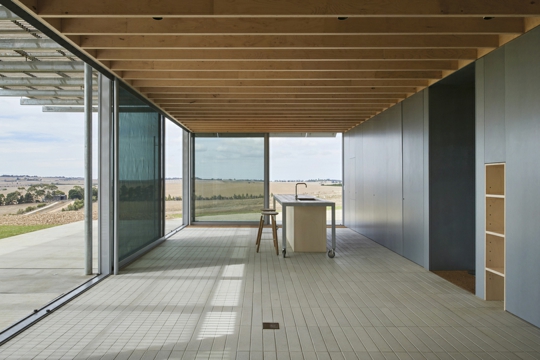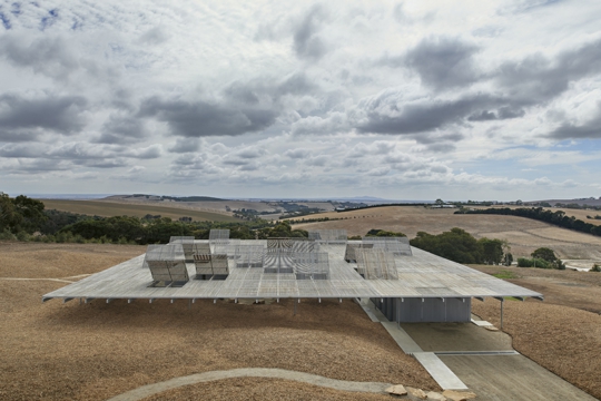 Lokaciju čini izdvojeni dio farme za uzgoj ovaca koji se prostire na 25 hektara očišćenih i neiskorištenih pašnjaka. Spušta se od najviše srednje točke prema sjeveru i jugu i nudi spektakularan pogled s obje strane. Čempresi, koji formiraju svojevrstan vjetrobran, čuvaju zapadnu granicu i pružaju zaštitu od jugo-zapadnih vjetrova koji pustoše južnim padinama, što lokaciju ne čini privlačnom za novu kuću. Južni su vjetrovi hladni u ovom dijelu Australije. Vjetar je zapravo imao ključan utjecaj na projekt ove kuće. Sjeverni (osunčani) paviljon koji sadrži prostore za život i pripadajuće dvorište, dijelom su zaštićeni nanovo oblikovanim krajolikom koji se nalazi s južne strane i, djelomično, rešetkastim sjenilom dimenzija 30 m x 30 m, koje lebdi iznad oba paviljona i dvorišta.