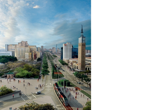 ...Integracija tramvaja je nastavak projekta urbane obnove koji je Zaragoza poduzela pod značajnom izlikom proslave Međunarodne izložbe. Moglo bi se primijetiti da priroda Aldayjoverovih prijedloga svjedoči o realističnijem zaokretu k ovom projektu nakon pretjerano ambiciozne i donekle neuspjele izgradnje prostora i arhitektonskih građevina koje su trebale ugostiti izložbu.