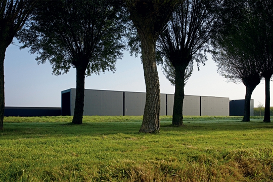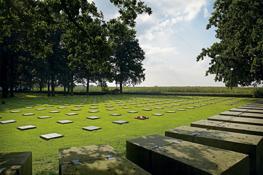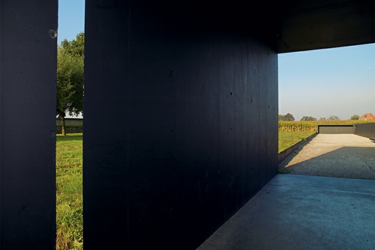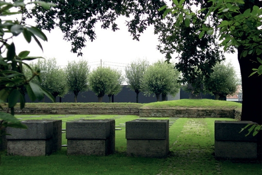 Njemačko je vojno groblje Langemark posljednje počivalište 44.000 vojnika poginulih u Prvome svjetskom ratu, od čega je u masovnoj grobnici pokopano 25.000 vojnika koji su preneseni iz drugih vojnih groblja u regiji u razdoblju od 1956. do 1958. godine. Groblje opasano niskim zidom podijeljeno je u tri grobne zone koje su gotovo ekvivalentne i paralelne trima prostorima u izvornome monolitnom prilazu izgrađenom 1930. godine od pješčenjaka iz Weserberga s interijerom obloženim hrastovinom. Preostale dvije zone razdvajaju tri međusobno povezana bunkera, ostatkeHindenburgove linije. Upravo taj ritam izgrađenih artefakata i prevladavajućeg zelenila inspirirao je belgijski arhitektonski ured Govaert&Vanhoutte da svojim ulaznim paviljonom iz 2006. slijede ovu alteraciju.