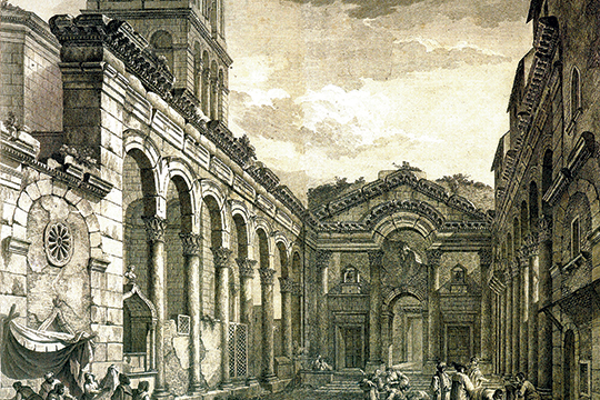 U pet tjedana terenskog rada Robert Adam i njegovi „Mirmidonci“ dovršili su arhitektonsko snimanje Dioklecijanove palače u Splitu. Za pripremu knjige Ruins of the Palace of the Emperor Diocletian at Spalatro in Dalmatia (1764.) trebalo mu je punih sedam godina. Adam je prvi pokušao analizirati i interpretirati ne samo formu, nego i izvornu funkciju pojedinih dijelova Palače, pa mu dugujemo većinu imena njenih elemenata (Peristil, Vestibul, Kriptoportik…). Za razliku od velikih prethodnika (Paladio, Fischer von Erlach) koji su crtali i pokušali interpretirati samo izvorni izgled palače, Adam je u njoj vidio i gigantski palimpsest. Bio je opčinjen organičnošću srednjovjekovne urbane strukture koja je poput bršljana oplela autoritativnu imperijalnu arhitekturu. Lekcije koje je ponio iz Splita ne očituju se samo u citiranju karakterističnih tema, poput monumentalnog pročelja Dioklecijanove palače (koja je dobila svoj eho na sklopu Adelphi na obali Temze), niti u upotrebi stupova kao arhitektonskog okvira unutar interijera (kao što se motiv stupova sa splitskog Peristila preodjenuo u Kedlestonu ili u Syon Houseu).