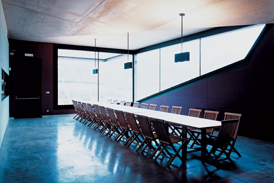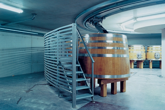 Ubrzo je postalo jasno da je najoptimalniji položaj novog podruma uz dvorac, pogotovo što grof s obitelji tu i živi. No, to je značilo najprije odstraniti obronak s vinogradom, pa ga zatim opet uspostaviti, što je rezultiralo golemom građevnom jamom i potrebom efikasnog osiguranja renesansne građevne supstance povijesnog podruma. Tri tisuće kvadratnih metara novog podruma raspoređeno je u tri etaže, od kojih je samo jedna ispod nivoa pristupnog trga ispred dvorca, dok druge dvije čine umjetni brijeg. Prožimanje prirodnog i umjetnog projektu daje otvorenost i višeznačnost. Njegovu naoko potpunu kontekstualnost valja relativizirati jer se radi o prividu, nikako o skrivanju pred neprikosnovenošću renesansnog dvorca.