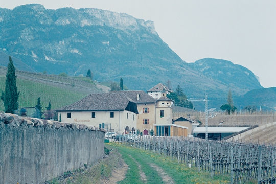 Jedna od privlačnosti regije, jezero Kalterer (Lago di Caldaro), okruženo planinama i vinorodnim bregovima, odnedavno je cilj arhitektonskih putovanja. Naime, uz obalu jezera 60-ih je godina klasik austrijske poslijeratne moderne Otmar Barth izgradio brutalistički hotelski objekt, relevantan i za današnje kriterije, a svega 10 minuta hoda dalje nalazi se avangardističko kupalište bečkog dua "next ENTERprise". U vinogradima iznad kupališta, a neposredno uz južnotirolsku vinsku cestu, naći ćemo vinariju "Manincor" arhitekata Angonesea, Köberla i Bodaya. Povijest vinarije, kao katalizatora procesa projektiranja, vrijedna je pažnje. Renesansni dvorac Campan s početka 17. stoljeća povijesno je vinogradarsko dobro s obiteljskom tradicijom proizvodnje vina dugom gotovo 400 godina. Ta je tradicija prekinuta 1977., da bi je 1996. opet uspostavio grof Michael Goëss - Enzenberg, koji je preuzeo naslijeđe najvećeg poljoprivrednog dobra u južnom Tirolu, među ostalim i 45 hektara vinograda na najboljim položajima.Tada je započeo projekt stvaranja vinskog brenda "Manincor" - produkcije vina s "karakterom, stilom i kompleksnošću", što je iziskivalo izgradnju novog podruma, primjerenog modernom načinu produkcije i čuvanja vina. Godine 2001. počinje suradnja s arhitektom Angoneseom, koji svoj biro u Bozenu preseljava u rodni Kaltern da bi bio posve blizu gradilištu, te sljedeće tri godine živi s projektom. Walter Angonese vjeruje u sinergiju raznih kreativnosti pa je na suradnju pozvao Rainera Köberla, značajnog insbruškog arhitekta i mladu arhitekticu iz Merana Silviu Boday. Pritom je koncept projekta razvijao u gotovo svakodnevnom kontaktu s investitorom i njegovim enologom.