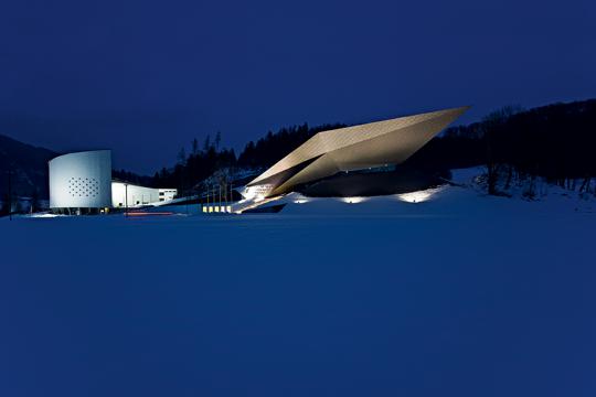 U Erlu već četiri stotine godina vlada strast prema religiji, umjetnosti i teatru. Od 1997. održava se Festival Erl. Za njega su Delugan Meissl Associated Architects (DMAA) projektirali savršenu ovojnicu: kuću koja poput crnog origamija izbija iz padine i tvori koherentni pandan bijeloj zgradi Pasionskih igara arhitekta Roberta Schullera iz 1959. godine.