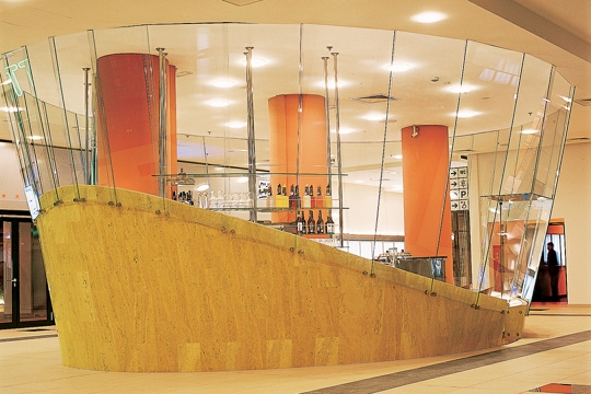 Choco bar “Delfin” arhitekta Mladena Kirina u zagrebačkom Branimir centru pomalo je neobičan interijersko-eksterijerski doživljaj. Smješten na zglobu dviju pseudoulica, pasaža prodajnoga centra čini se upravo kao onaj element koji novom shopping poprištu daje donekle ekscesni karakter, sugerirajući kako doista i postoji u nekom gradskom mizanscenu, a ne u još jednom hramu suvremenog potrošačkog društva.