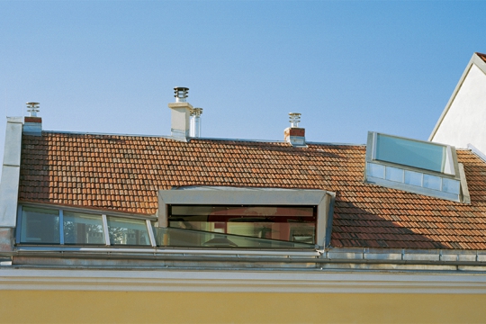 “Rooftop 02“, smješten u tipičnoj bečkoj ulici, u prilično mirnoj četvrti, nudi još jedan upečatljiv primjer stalne Holodeckove teme preoblikovanja stanovanja. Umetnuta odmah ispod krova je projekcija samog krova. Kut nagiba krova je bio ključni element u projektiranju tlocrta. Postojeći prostor je zarotiran točno pod tim kutom.