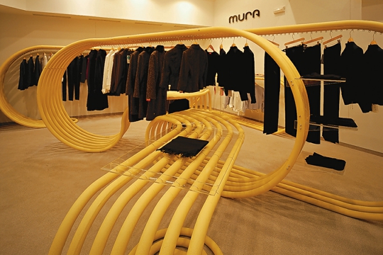 Zašto se sve više arhitekata prihvaća oblikovanja trgovina, pisanja priručnika za kupovanje i bavljenja identitetom zaštitnih robnih znakova? OMA ili Herzog & Meuron za Pradu, Gehry za Miyake, Future Systems za Marni, Ando za Armani, a sada Sadar Vuga za Muru; je li riječ o ekscesu, modi, povezivanju zaštitnih robnih znakova (co- branding) ili pak o ozbiljnom arhitektonskom istraživanju? Je li u vremenima kad je arhitektonska produkcija sve podvrgnutija ekonomskim parametrima koji zahtijevaju što jeftiniju i što bržu gradnju, te koji ne dopuštaju prevelike odmake od provjerenih rješenja, je li u takvim prilikama baš trgovinski interijer onaj koji omogućuje više eksperimentiranja?