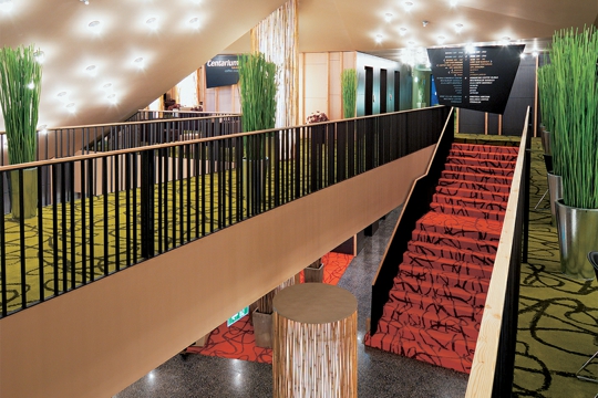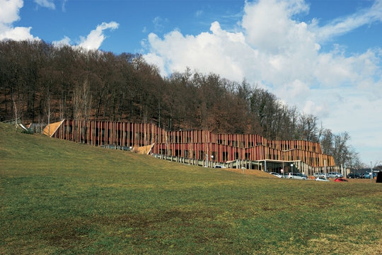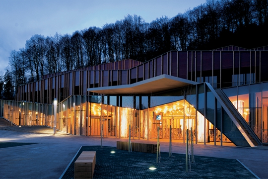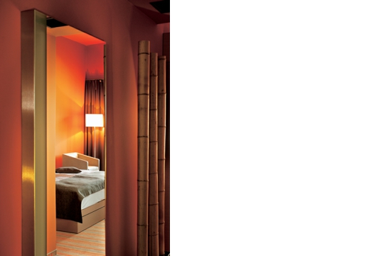 Podčetrtek, gradić u istočnoj Sloveniji, čuven po svojim ljekovitim termalnim vodama, noću nudi neobičnu dobrodošlicu. Umornog gosta pozdravljaju dva užarena, neodre|ena (arhitektonska) objekta. Prvi, uz cestu, izgleda kao neka vrsta okvira za živu šarenu svjetlosnu igru, drugi, smješten poviše, ispod brda, osvijetljen je mirnijim tonovima. Topla žuta svjetlost poziva u putenu atmosferu, koja po ulasku dobiva obris hotelskog lobija. U objektu, koji gost još uvijek ne prepoznaje u njegovoj cjelovitosti, je svijet sužen na blistavi ulaz, lobi koji djeluje ugodno i opušteno, na diskretno osvijetljene hodnike te konačno – na tišinu sobe. Gost, posve isključen iz vanjskog lika hotela, izložen je samo osvijetljenom snovitom krajoliku njegovih interijera. Ali danju je percepcija hotela “Sotelia” posve drugačija.