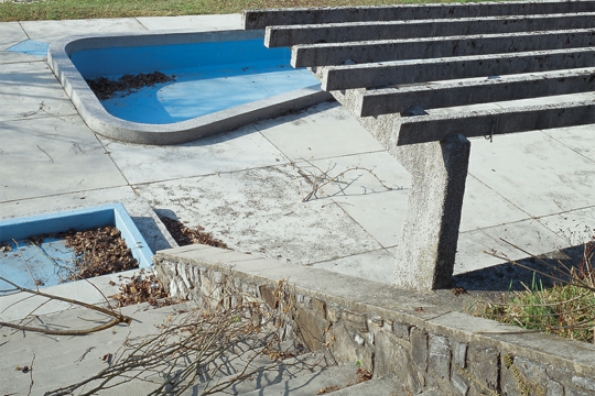 Prigodom ponovnog posjeta kupalištu u Radečama pribojavala sam se gubitka još jednog djelića naše moderne arhitekture te očekivala jadnu sliku napuštenog bazena.... Kupalište na brijegu, daleko od naselja, već prije više godina nije pobu|ivalo nadu da će očuvati svoju prvotnu sliku. No, bazen je još uvijek gotovo onakav kakav je na prvim fotografijama, a u ljetno je vrijeme, prema svjedočenju domaćih, pun oduševljenih kupača.