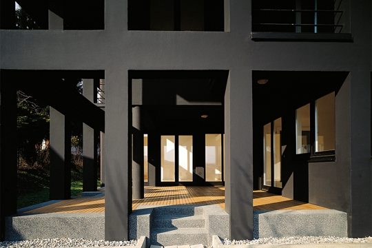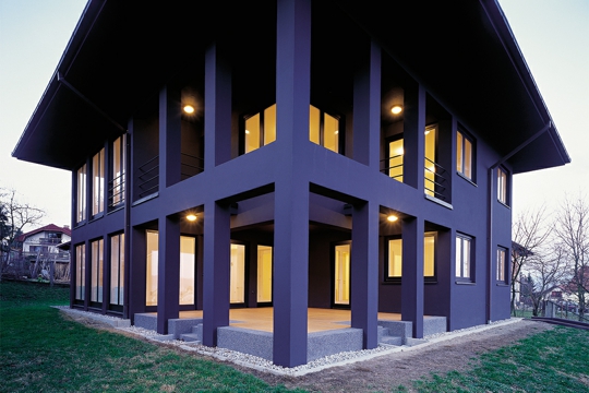 Monokromna plava platna Yvesa Kleina kritičar Pierre Restany nazvao je “minutom istine”. Arhitekt Vlahović, autor monokromnih crnih i plavih kuća (kuća Raubar 1986.-1990. i indigo plava kuća 1995.- 1997.) navodi baš Kleinov opus kao jedno od ishodišta svoga razmišljanja o arhitekturi. Etička kategorija istinitosti postaje očita kod najnovije Vlahovićeve crne kuće u okružju samoborskog predjela Giznik – područja relativno guste izgradnje starijim, anonimnim obiteljskim kućama, ali i najnovijim zdanjima lažnog nouveau riche karaktera.