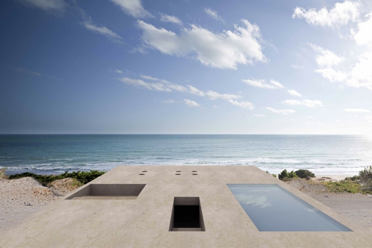 And while this theme of the platform frequently appeared in my earlier projects, with some element built on top of it to house practical functions, I believe that the search for refinement in making sure that the upper plane is truly the main plane remains a contribution that can still be made to architecture: the construction of the radical flat horizontal plane. In each case, the material used in their construction, i.e. the super-white marble in Cadiz, the black concrete in Lanzarote, and the sand or travertine in Tarifa, contributed effectively to the spatial dominance of the horizontal plane.