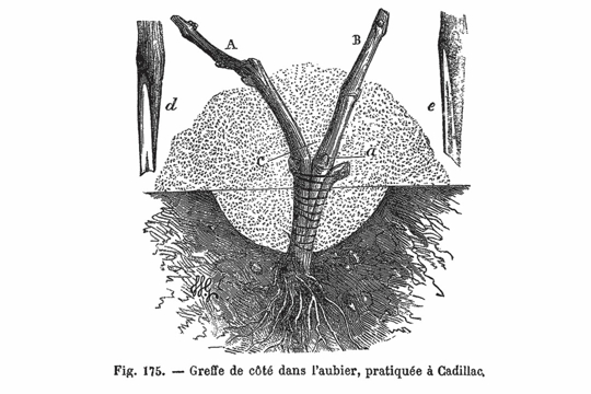 Grafting is a process that involves inserting part of a tree with one or more buds into the branch or trunk of another tree such that a permanent union is established between the two, in the same way as the viticulturist who grafts a scion from the desired grape variety onto the rootstock and where the subsequent grape quality and the excellence of the resulting wine stem from correct union between scion and rootstock. In architecture we can identify a number of processes that bear a great similarity to this botanical process.