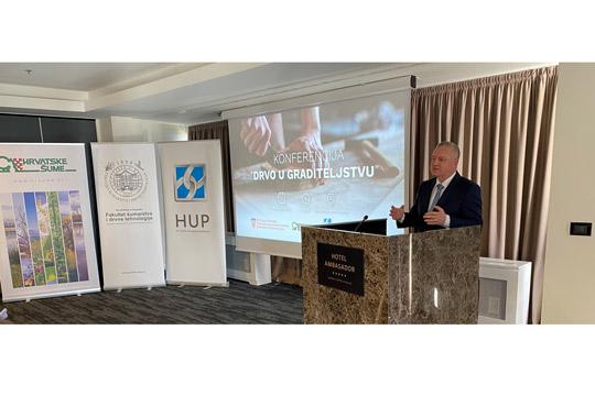 Opatija, 8. veljače 2022. – S temom „Drvo u graditeljstvu“ održana je konferencija koju je organizirala HUP-Udruga drvne i papirne industrije, uz pokroviteljstvo Ministarstva prostornog uređenja, graditeljstva i državne imovine, te suorganizatore Fakultet šumarstva i drvne tehnologije Sveučilišta u Zagrebu, Hrvatske šume i udrugu Oris Kuća arhitekture.