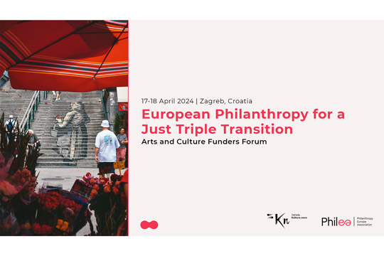 Zaklada "Kultura nova" u suradnji s Philea Forumom financijera za umjetnosti i kulturu organizira konferenciju "Europska filantropija za pravednu trostruku tranziciju" koja će se održati u četvrtak, 18. travnja 2024. od 14.30 do 19.30 sati u Oris Kući arhitekture (Ul. kralja Držislava 3) u Zagrebu.