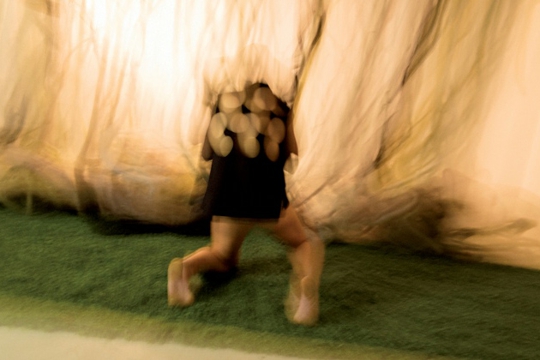 Ti odvojeni svjetovi ovom izložbom opet postaju svojevrsni singularni svemir, zatvaraju krug reinterpretirajući time i svaku točku kružnice. Sve je opet ovdje, ali na neki novi način, u kojem se iznova prolazi kroz predodžbe, asocijacije i uspomene na zadnjih 15 ili koliko godina. Krug čija je metafora i loop koji gledate, u kojem se pokret paradoksalno nalazi u mjestu, a mjesto je očito u pokretu. Ovo jest i dekonstrukcija, ali ne odjeće (jer ona je pažljivo porubljena), ili fotografije, nego samih njihovih ideja. Kako će odjeća 'pristajati' i kako će fotografija 'izgledati' najmanje je važno. Uostalom, dok su mi ranije pokazivale odjeću koja će biti izložena, dizajnerice su je same morale nekoliko puta prevrnuti u rukama u potrazi za 'pravom' stranom. Otvori i prorezi, vrpce koje su vezane ili se slobodno kreću, na tijelu i oko njega na slici, nisu ovdje da prate, naglase ili budu kontrast. Nisu tu ni iz banalnog razloga da nam nešto namjerno otkriju ili sakriju. Oni su tu da resetiraju svaku našu ideju o obliku i pokretu, pokrivenom i otkrivenom, statičnom i zaigranom. Pa u krajnjoj liniji i ovu koju sam upravo iznio - kako nisu ovdje da 'nešto namjerno otkriju ili sakriju'. Jer to zapravo ne neki način ipak rade.
