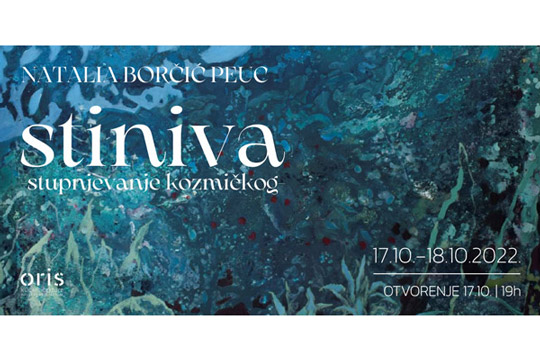 U ponedjeljak 17. listopada 2022. u 19 sati u Oris Kući arhitekture (Kralja Držislava 3, Zagreb), otvara se izložba Natalie Borčić Peuc: Stiniva - Stupnjevanje kozmičkog.