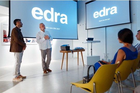 Jedan od vodećih ljudi EDRE, Michele Serafini, u utorak 20. lipnja 2017. u 19 sati u Oris Kući arhitekture održat će predavanje pod nazivom EDRA i razvoj dizajnerskog namještaja od početne ideje do njegove primjene u suvremenom interijeru.