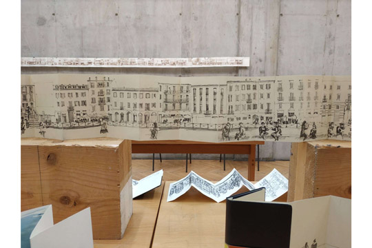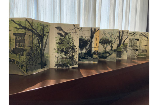 Izložba Davisi Boontharm u Oris Kući arhitekture u Zagrebu donosi dosad najveći broj njezinih orihon skica i crteža na jednom mjestu. Kada ih se rastvori, ti Moleskineovi mali japanski albumi dimenzija 9x14 cm ukupno su dugi više od stotinu metara. Ovisno o temi ili raspoloženju, crtani su i slikani slijeva nadesno odnosno zdesna nalijevo olovkom, nalivperom, kistom, akvarelom ili tušem, desnom, a katkad i lijevom rukom.