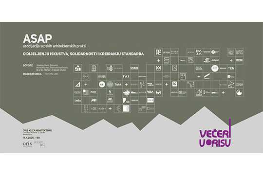 Pridružite nam se u ponedjeljak, 14. travnja 2025., u 18 sati, na Večerima u Orisu i predstavljanju Asocijacije srpskih arhitektonskih praksi (ASAP).