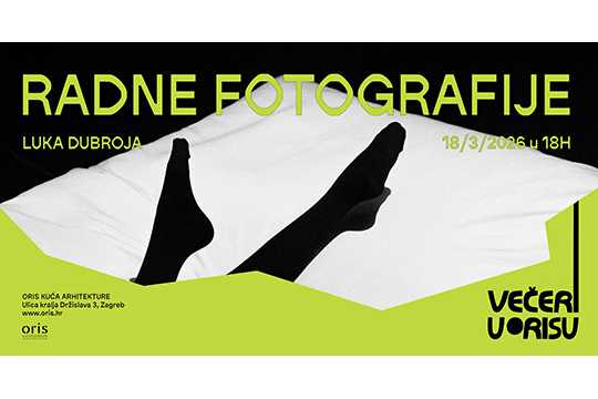U srijedu, 18. ožujka 2026. u 18 sati u Oris Kući arhitekture (Kralja Držislava 3, Zagreb) otvara se izložba fotografija Luke Dubroje pod nazivom Radne fotografije. U sklopu izložbe i programa Večeri u Orisu održat će se razgovor i predavanje koje će moderirati Andrea Taraš, a jedan od sugovornika bit će i fotograf Ivan Gundić.